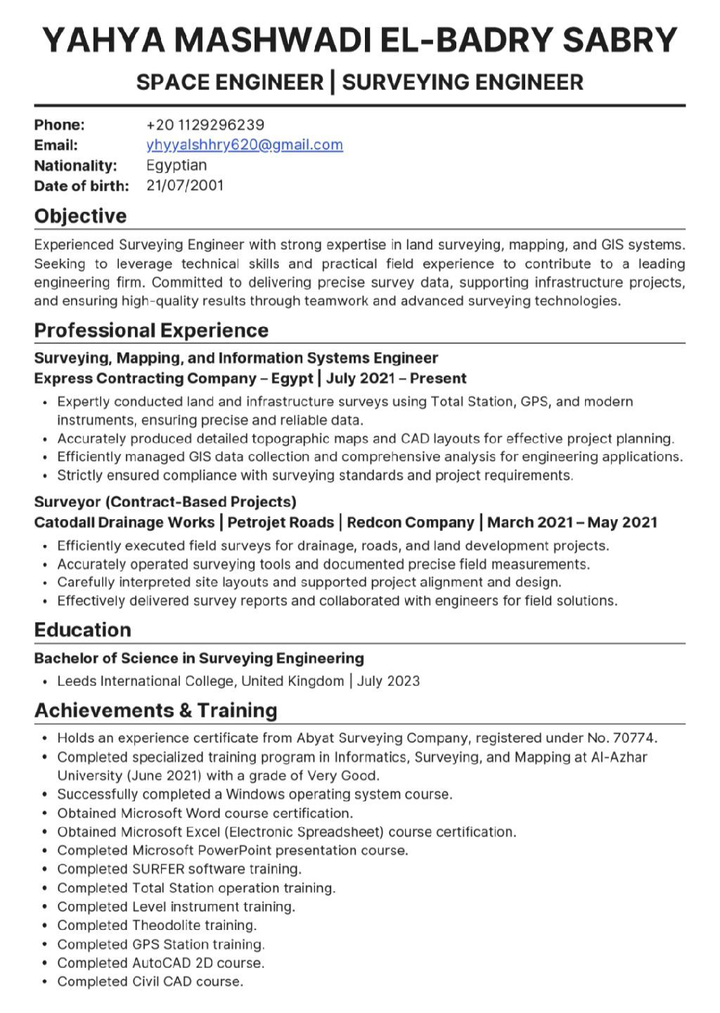 أنا مهندس مساحة بكالوريوس هندسة قسم مساحة جامعة ليدز يونايتد، ابحث عن عمل مساح عام خبرة 5 سنوات في البنيه التحتية
