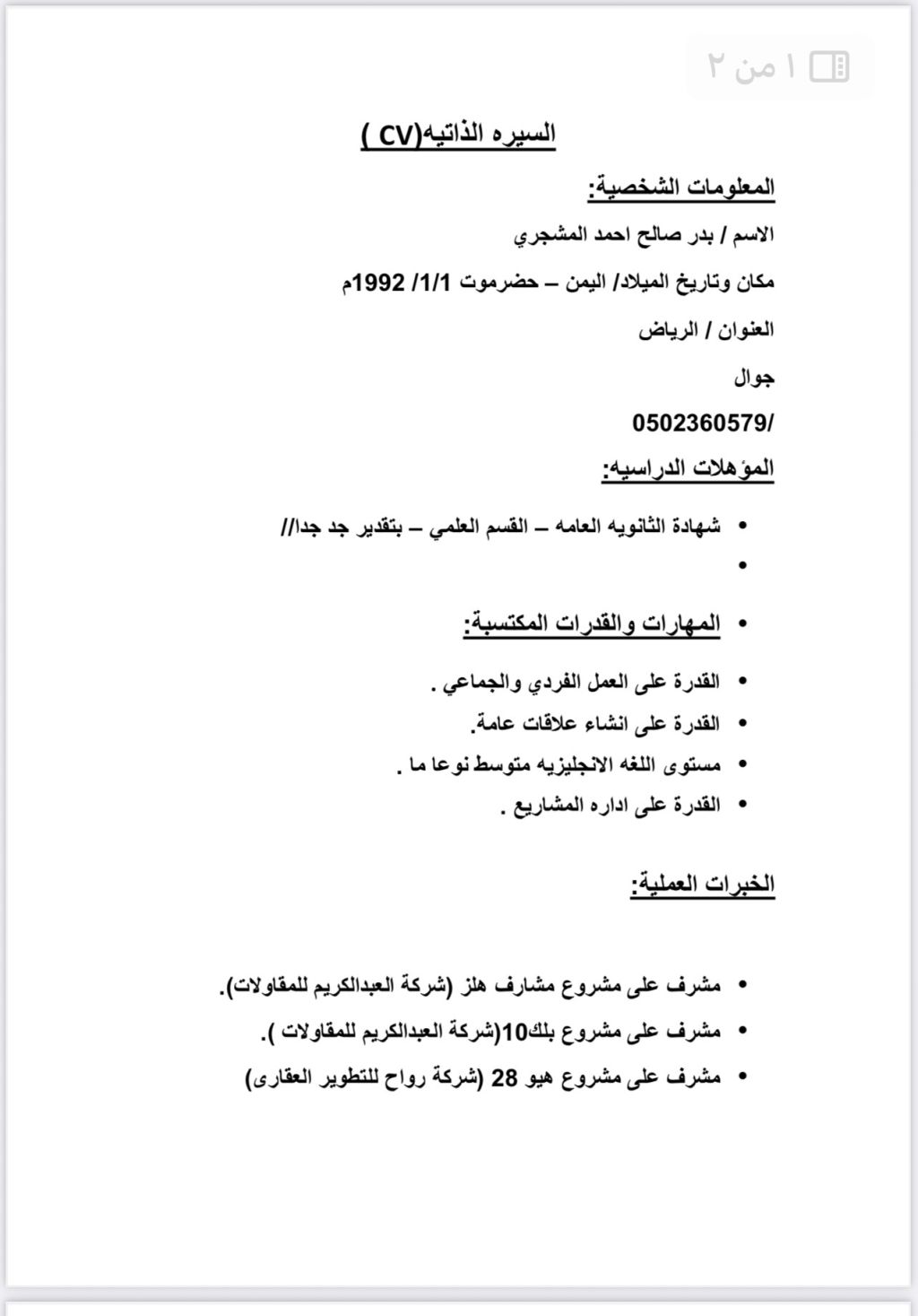 مشرف خبرة 5 سنوات في الاشراف تطوير عقاري مشاريع انشائي تشطيبات