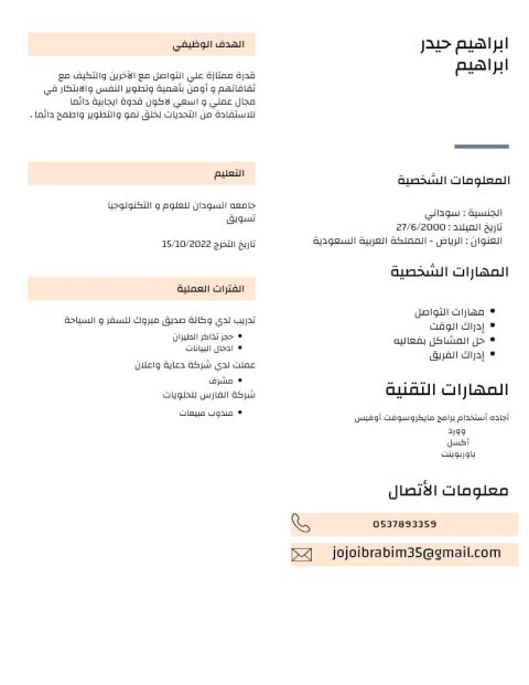 على استعداد تام لاستقبال الزبائن في جميع المجالات التجارية عملت ككاشير في مطاعم السيرة الذاتية وال CV بالواتساب