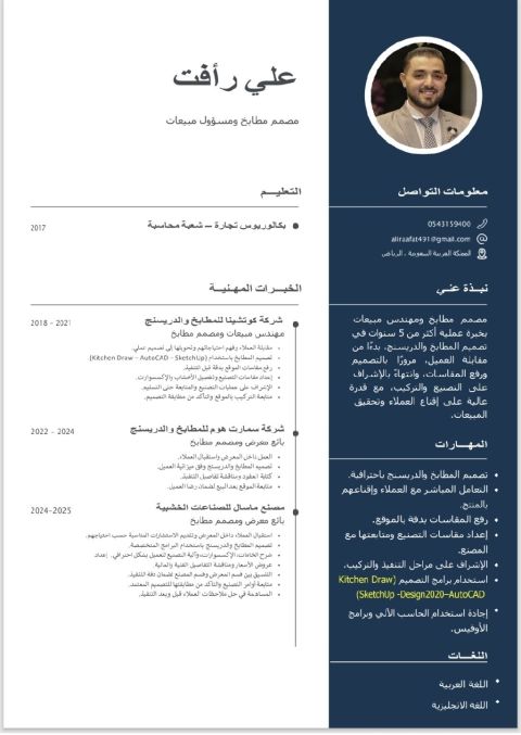 استشاري مبيعات ومصمم مطابخ وخزائن ملابس خبرة أكثر من 6 سنوات على برنامج اسكتش أب / design 2020/ كيتشن درو
