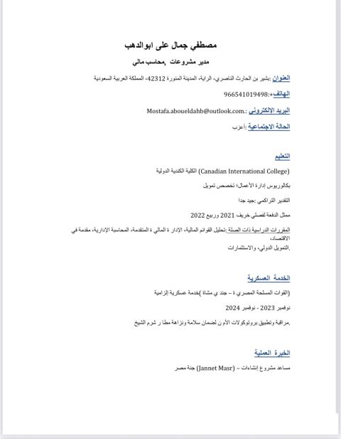 My Name is Muhammad Afaq. Business and Management graduate with BBA degree and accounting internship experience. Skilled in MS Office, data analysis, and financial reporting. Immediately available for any job opportunity anywhere in Saudi Arabia. Have valid transferable Iqama and ready to join immediately