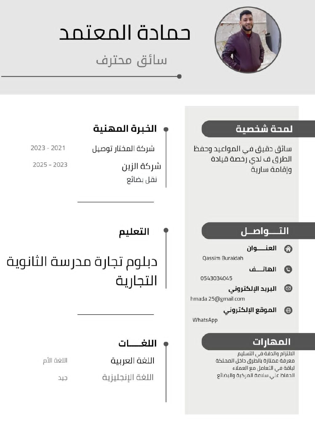 ابحث عن وظيفة سائق معي رخصة قيادة سارية وإقامة سارية سنة متواجد في القصيم ومستعد للعمل بأي منطقة