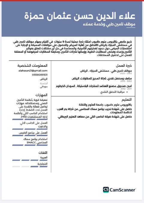 سوداني مقيم في الخرج خبرة في الاستقبال وبرنامج نزيل والتعامل مع الحاسب الآلي بشكل ممتاز إقامة سارية اشتغلت مدخل بيانات وأمين مستودع