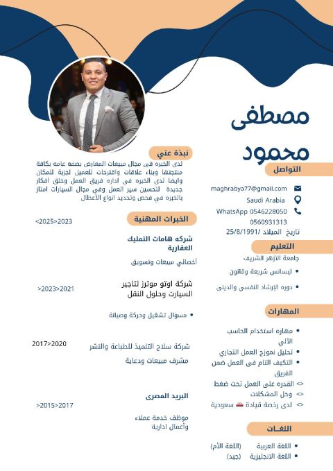 ابحث عن عمل في مجال العقارات حيث يمكنني تقديم قيمة ملموسة في المجالات التالية إدارة الأملاك متابعة العقارات والتسويق وكتابة العقود والمنصات الهيئة العامة وعقار وإيجار خبرة 3 سنوات