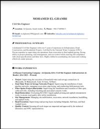 مهندس مدني موقع متواجد في القصيم. لدي خبرة أكثر من 5 سنوات في مشاريع البنية التحتية والطرق