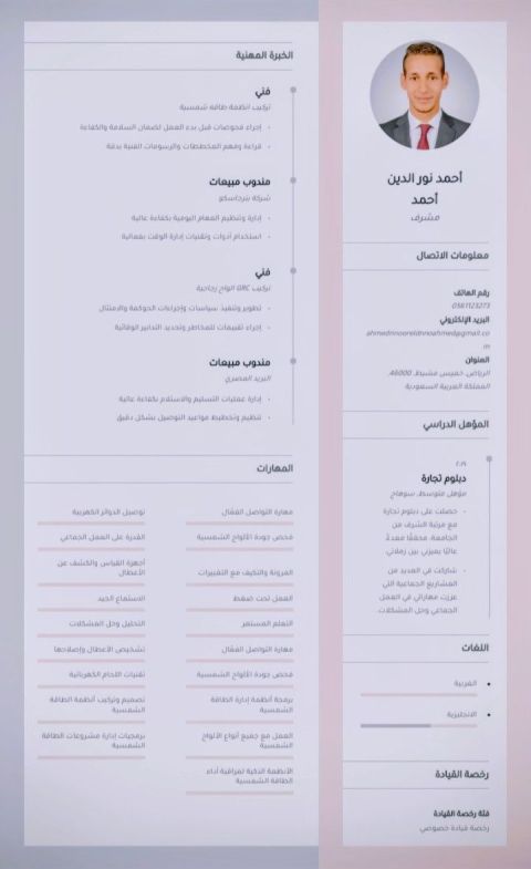 مصري مقيم بالمملكة العربية السعودية. لدي خبرة في عدة مجالات مثل تركيب أنظمة الطاقة الشمسيه وتركيب ألواح جي أر سي الخارجية للمباني السكنيه ومندوب مبيعات ولدي خبرة لعدة سنوات