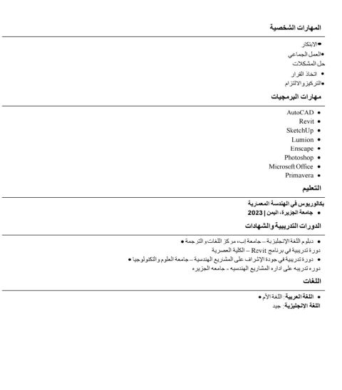 Civil engineer with 11 years of experience in Saudi Arabia. Technical office work includes calculating quantities for contractors, surveying work, accurate and high - quality project handover, surveying, landscaping, insulation, swimming pools, elevators, fire suppression and fire protection systems, MEP works, reinforced concrete, finishing (plastering, painting, tiling, gypsum, stone, marble, inte