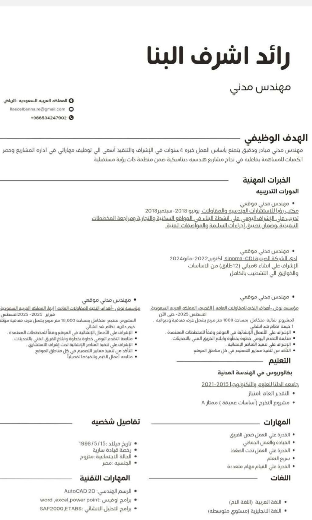 A proactive and meticulous civil engineer with a solid work ethic and extensive experience in supervision and execution, I seek to utilize my project management and quantity surveying skills to contribute effectively to the success of dynamic engineering projects within a forward - looking organization