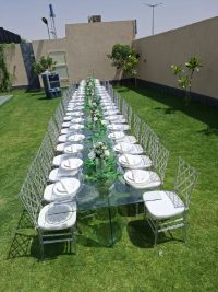 تأجير لوازم الأفراح والمناسبات كراسي وزل وسجاد وكوش وطاولات طعام وصحون وملاعق وسكاكين مائدة ذهبيه دفايات سماعات معي الم كسر وألميك ومنظم الصوت