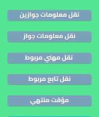 جميع الخدمات الالكترونية. ازالة ملاحظة حماية الأجور نقل معلومات جوازين. نقل مهني مربوط. نقل تابع مربوط فصل تابع مربوط. تمديد بغرض التجديد. مؤقت منتهي شهادة صحية. شهادة سلامة