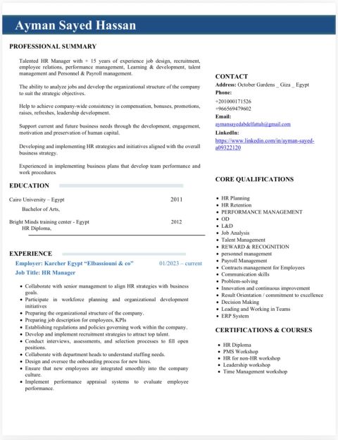 Talented HR manger with 15 years of experience job design, recruitment, employee relations, performance management, learning, development personnel and payroll management. The ability to analyze jobs and develop the org structure of the company to suit the strategic objectives. Help to achieve company - wide consistency in compensation, bonuses, promotions, raises, refreshes, leadership develop