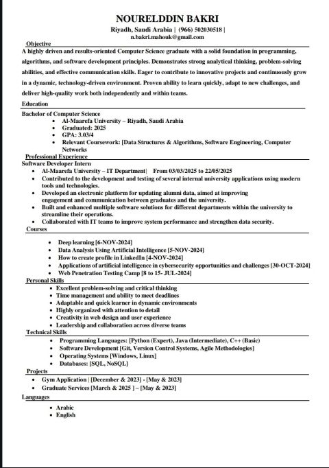 أنا طالب علوم حاسب خريج حديث بمعدل 3.03 من 4 وابحث عن عمل سنة التخرج 2025 شهر 5