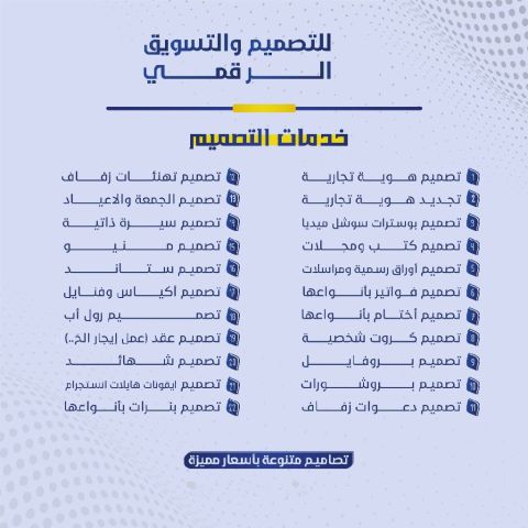 وفر راتب مصمم بدوام كامل، معك مصمم جرافيك محترف عن بعد، خبرة لأكثر من 12 سنة، أوفر لك 60% من تكاليف دوام كامل من الإيجار والراتب والتأمينات وغيره، وأحقق معك النتيجة فوق الممتازة لمشروعك أو مؤسستك، نضمن لك سرعة قياسية (خلال 24 ساعة الى 72 بحد أقصى بحسب التصميم) وكفاءة مزدوجة (ذوق محلي عالمي) ومرونة تامة لغاية ما تكون راضي 100% عن تصميمك وما رح يكون آخر تعامل بيننا، تواصل معنا وأعرف التفاصيل