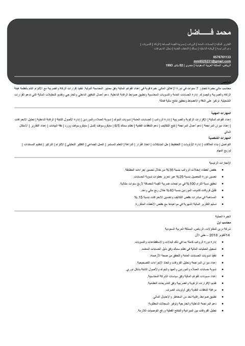 محاسب مالي محترف يتمتع بخبرة تزيد عن 7 سنوات في دورة الاغلاق المالي اعداد القوائم المالية وفق معايير المحاسبة الدولية، والامتثال الضريبي والزكوي وفق أنظمة هيئة الزكاة والضريبة والجمارك خبرة واسعة في إدارة الحسابات العامة، التسويات المحاسبية، الرقابة الداخلية، ودعم عمليات التدقيق الداخلي والخارجي. أتقن استخدام أنظمة المحاسبة وتحليل الانحرافات المالية لدعم اتخاذ القرار الاستراتيجي