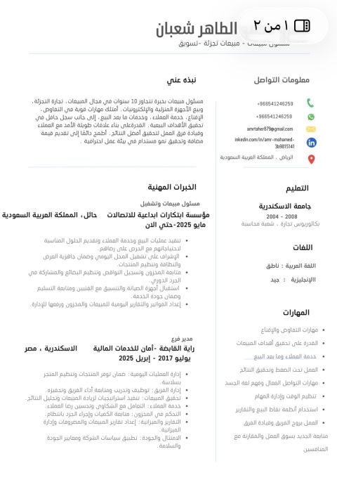 Sales Specialist with 10 + years in sales, customer service, and after - sales support, experienced in leading teams. Expertise in electronics, mobile phones, and accessories, with 3 years in the Saudi market and strong understanding of its dynamics. Seeking a reputable company to add real value and achieve sales targets. Residence transferable - ready immediately
