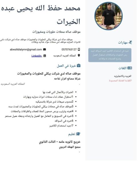 Cleaning team supervisor with 4 years of experience working in Riyadh/ Asir/ Jeddah. Also a public facilities maintenance supervisor