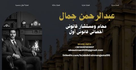 محامي مصري ومستشار قانوني مقيم في أبها. خبرة كبيرة في مختلف القضايا وصياغة العقود والمذكرات وتقديم الاستشارات القانونية خبرة في الأنظمة السعودية والتعامل مع مختلف المنصات (ناجز. تراضي. معين) وغيرها