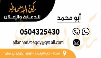 خطاط وكالة ركن الإعماري للدعاية والاعلان (تنفيذ وتركيب الحروف البارزة والمضيئة (حروف زنكور بارزة ومضيئة - حروف أستيل بارزة ومضيئة - حروف اكريلك بارزة ومضيئة) لوحات فليكس مضيئة - لوحات ارشادية - طباعة بنرات وستيكرات - طباعة كروت شخصية - طباعة بروشورات - دروع - أختام - كروت أفراح - منيوهات - أعمال مدرسية (وسائل تعليمية - مجسمات فلين - خط يدوي - ملف انجاز - رسم على الجدران - طباعة على الاكواب)