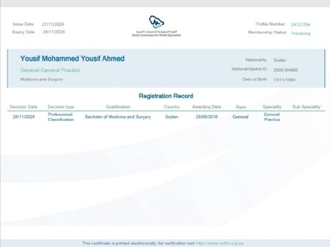 A General Practitioner licensed by the Saudi Commission for Health Specialties (SCFHS) and a I am USMLE Step 2 CK (220) holder, with over three years plus of experience in general practice, primary care, emergency medicine, and urgent care, supported by additional exposure in pediatrics and PICU. I hold a transferable Iqama and am available for immediate joining within the Kingdom of Saudi Arabia