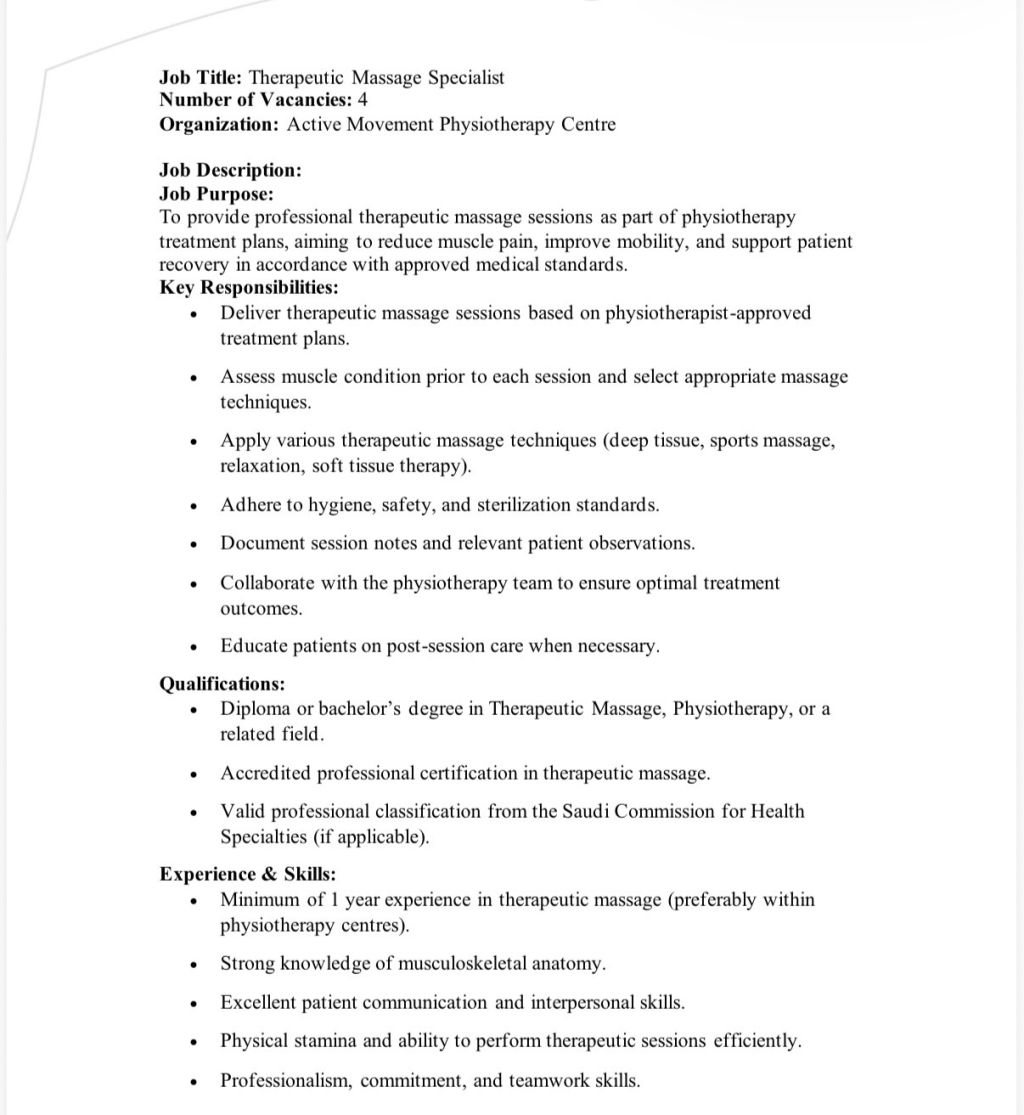 Staff are needed to receive treatment at a medical center in Al Qassim, Buraidah
