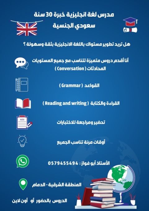 معلم لغة انجليزية سعودي متمكن خبرة لكل المراحل جامعي ثانوي متوسط ابتدائي Expert Saudi English teacher