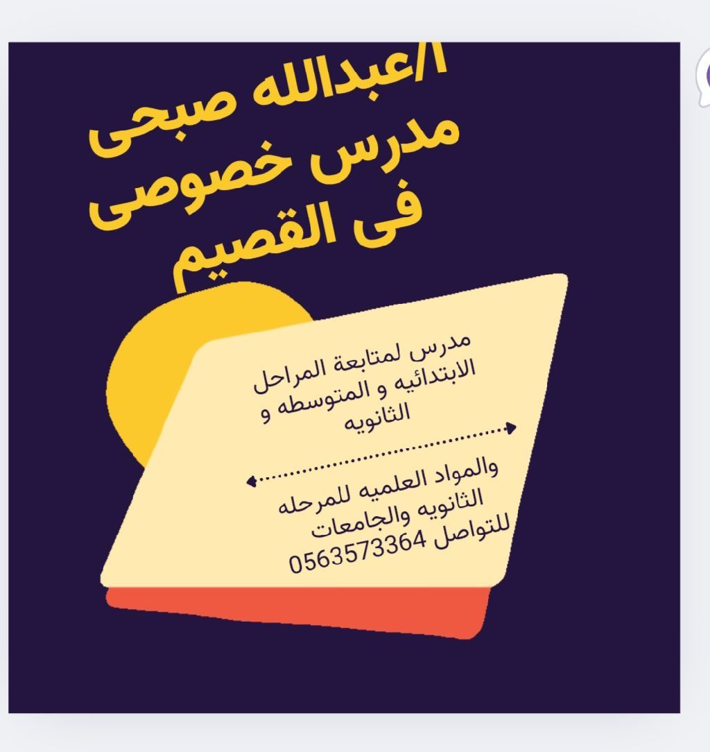 معلم خصوصي لمتابعة المراحل الابتدائيه والمتوسطه والمواد العلمية للمرحلة الثانوية والجامعات
