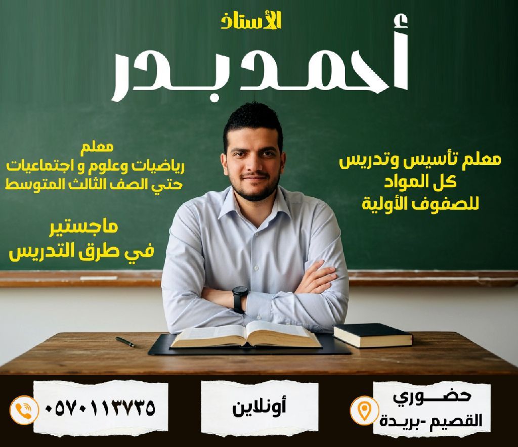 معلم تأسيس للمراحل الأولىه، ومعلم (رياضيات - علوم - اجتماعيات) حتى الصف الثالث المتوسط. نسأل الله التوفيق