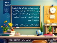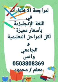 معلم انجليزي لمراجعة الاختبارات مع التأسيس والمتابعة لكل المراحل التعليمية والجامعي