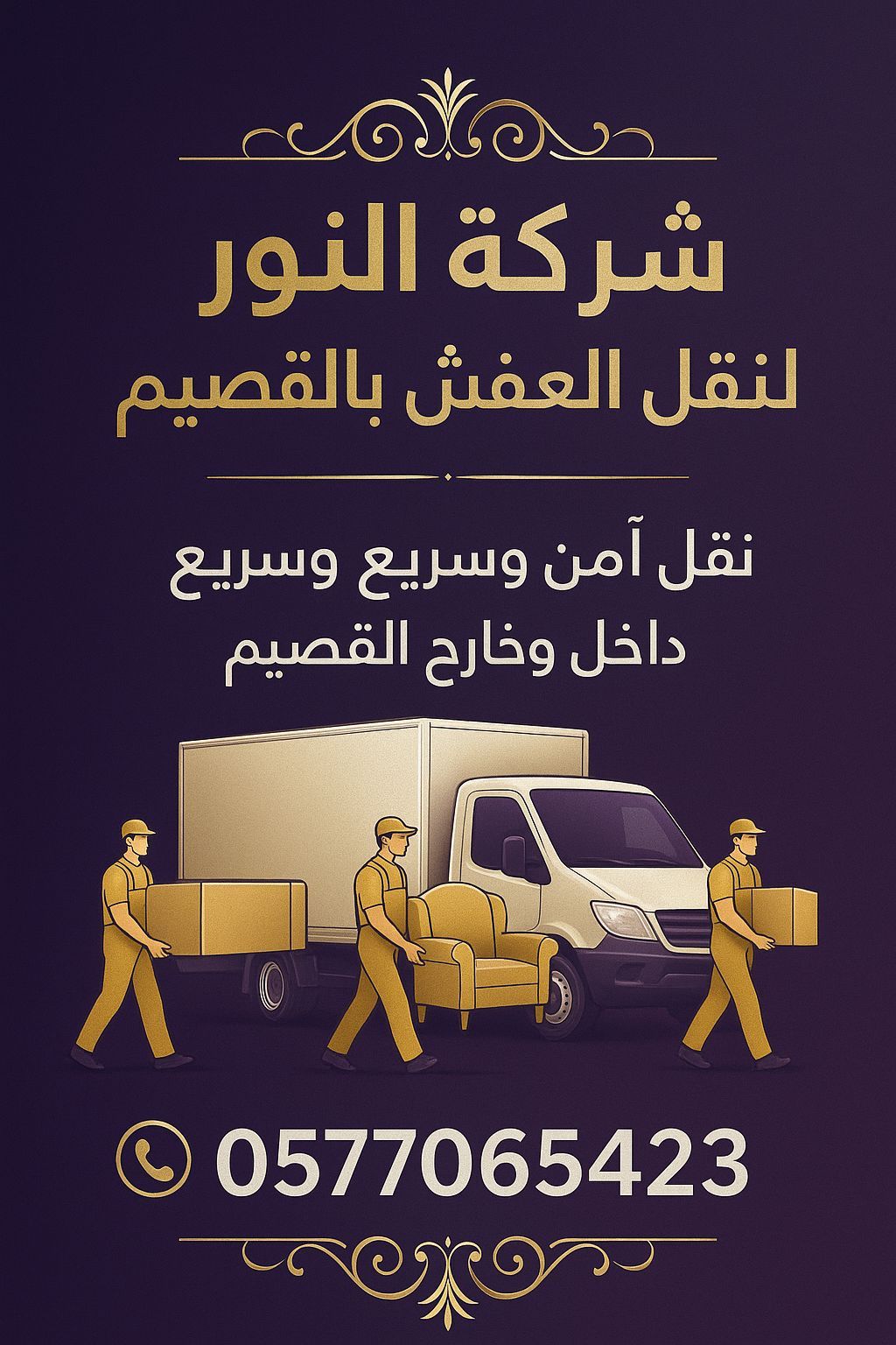 شركة النور لنقل العفش في القصيم وجميع أنحاء المملكة متخصصين في أعمال الفك والتركيب والنقل والتغليف عماله مدربه على أعلى مستوى سيارات مجهزة لنقل العفش خدمة 24 ساعة اتصل بنا نصلك أينما كنتم