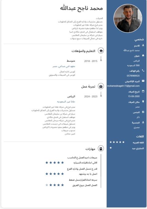 أنا محمد محمود سوداني الجنسية إقامة سارية ورخصة قيادة سارية طموح وشغوف بالعمل الاداري ذو خبرة ثرية في ادارة التشغيل وفق خبرتي في مؤسسة سوداتيل للاتصالات وخبرة في شركة رام اللوجستية في السعودية وخبرة في مجال المبيعات والتسويق والتواصل الفعال مع العملاء وجذبهم للتنمية الهادفة للمؤسسة ولدي معرفة ببرامج الأوفيس وأتحمل ضغط العمل قابل للتنقل أتحدث اللغة العرية والانجليزية
