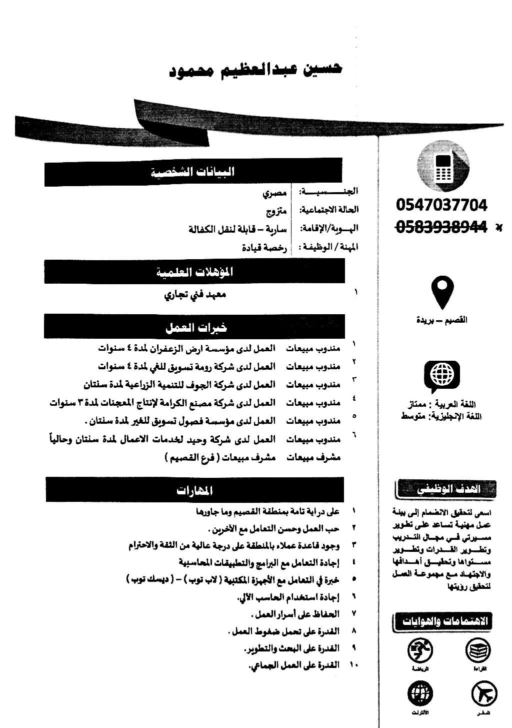على دراية تامة بمنطقة القصيم وضواحيها مع وجود قاعدة عملاء ممتازة بالمنطقة