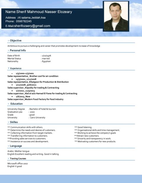 اشتغلت أمين مخزن واشتغلت مندوب مبيعات في مستحضرات التجميل والعناية بالبشرة ومستلزمات طبية والورقيات والمناديل والمنظفات خبرة 8 سنوات في المجال ومعي رخصة قيادة