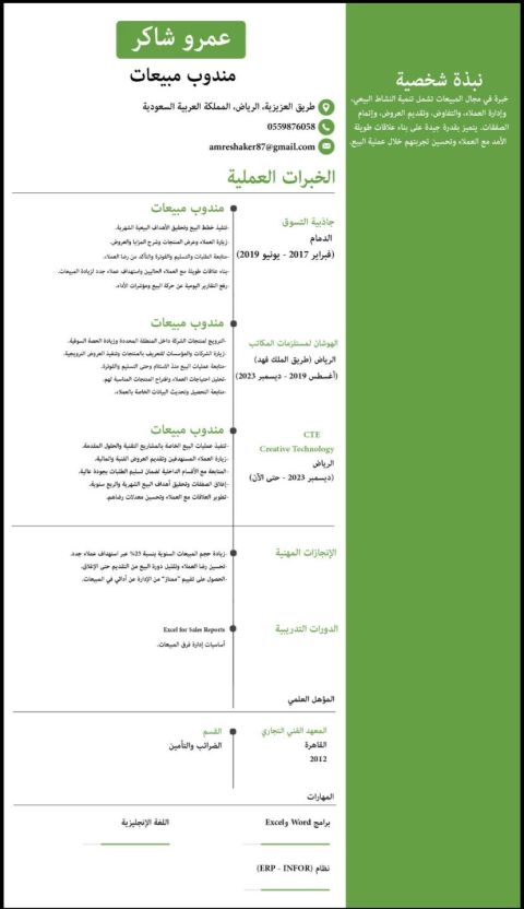 مندوب مبيعات خبرة أكثر من 8 سنوات في مجال البيع