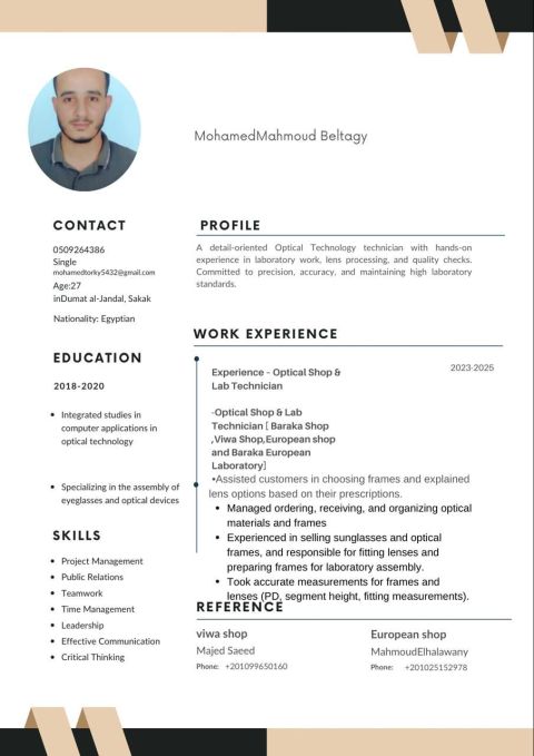 أحمد محمد مصطفى 26 سنة خريج معهد فني تجاري من بعد ثانوية عامة محتاج شغل معي رخصة قيادة خصوصي جاد في شغل وقابل للتطور
