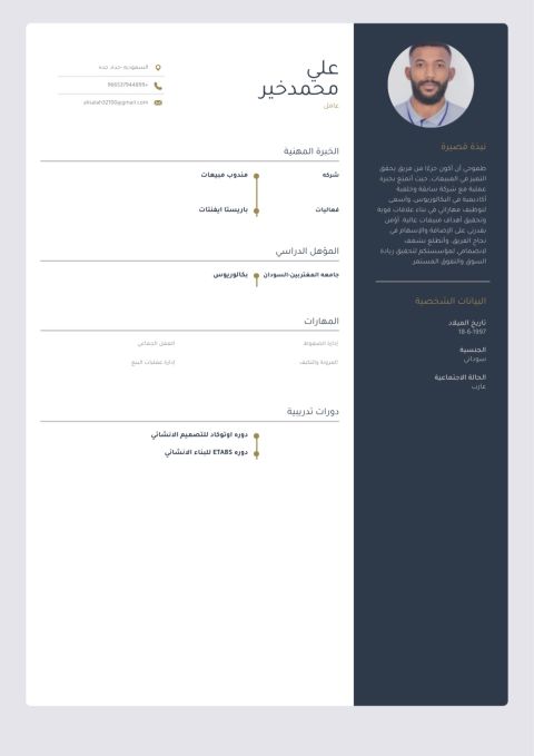 عمري 27 سوداني الجنسية طموح وراغب للعمل بأي مجال عايش بمدينة جدة الإقامة سارية