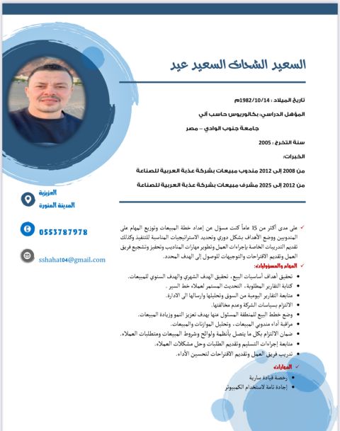 ابحث عن عمل في مجال المبيعات أكثر من 15 سنة خبرة وعلي دارية كاملة بخطوط سير المدينة المنورة والسوق المركزي (والمنطقة المركزية حول الحرم)
