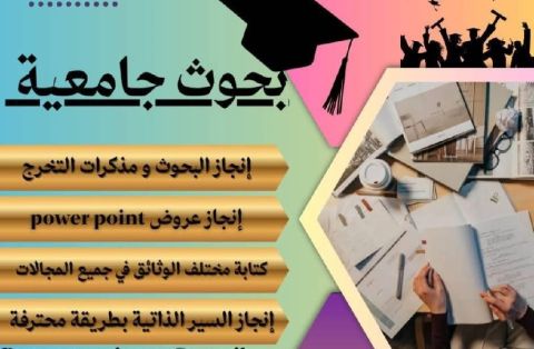 أقدم خدمات أكاديمية واحترافية في اعداد بحوث البكالوريوس والماجستير، والأوراق العلمية والمقالات. ملفات الانجاز للمعلمات والطلاب. عروض بوربوينت احترافية وملفات تفاعلية. تنسيق ملفات PDF وWord وتصميم النماذج والجداول. مزايا العمل أسلوب أكاديمي منظم، تنسيق احترافي، التزام بالوقت، وتعديلات حتى رضا العميل. العمل عن بعد لجميع مناطق المملكة