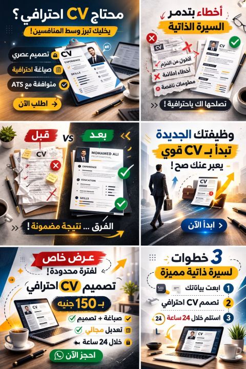 يمكنك عمل سيرتك الذاتية (CV) طبقا لمعايير سوق العمل السعودي. للتقدم بها في كافة الوظائف المختلفة بأقل الأسعار وبأعلى جودة مختبر علي نظام ATS تصميم سيرة ذاتية احترافي يلفت الانتباه ويظهر مهاراتك بشكل مميز. تنسيق ابداعي يناسب جميع التخصصات والمهن. تسليم سريع وبأسعار تنافسية لأن سيرتك الذاتية هي أول انطباع عنك، لا تتركها للصدفة داخل المملكة ب 7 ريال مصر 50ج فقط للتواصل من داخل الممل