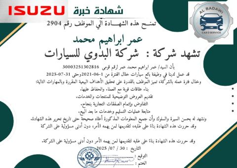أنا معلم زيوت وفلاتر بجميع أنواعها تسويق. خبرة ثلاث سنوات كنت في البترول الذهبي لي خبرة كافية على الجهاز والزيوت والتسويق