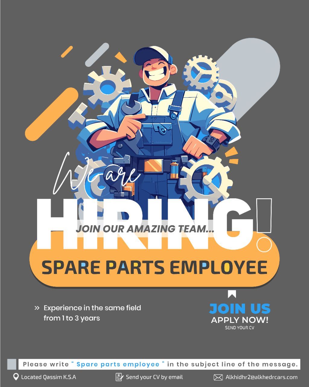 مطلوب موظف قطع غيار يمتلك خبرة لشركة عبد المجيد الخضر للسيارات مركز الصيانة (القصيم بريدة - طريق الملك عبد العزيز، حي المنتزة، بريدة 52381) خبرة من سنة الى 3 سنوات يرجى كتابة موظف قطع غيار - القصيم في عنوان الرسالة ترسل السيرة الذاتية على / البريد الألكتروني