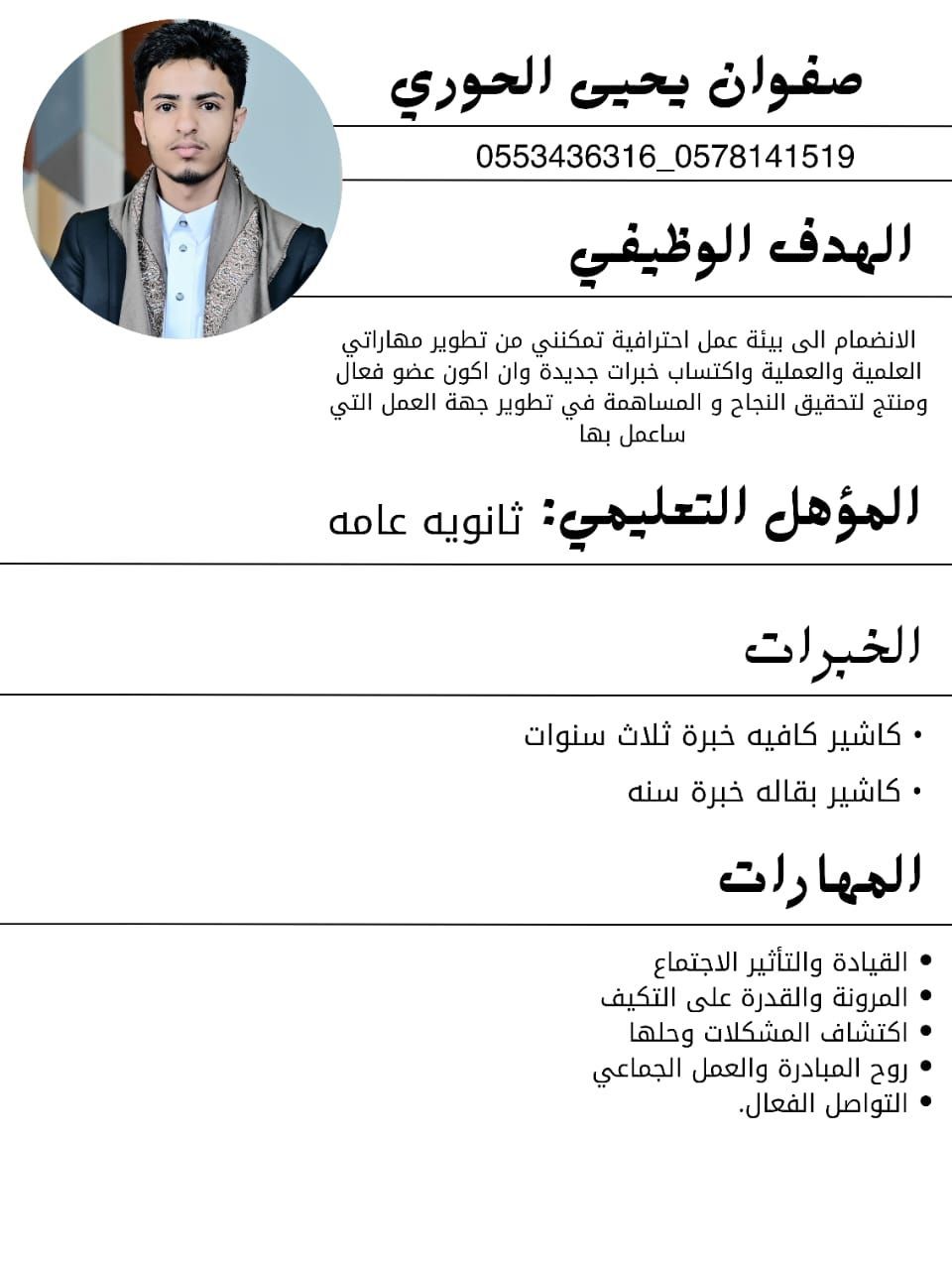 معلم شاهي خبرة 3 سنوات وكاشير وسوبر فايزر