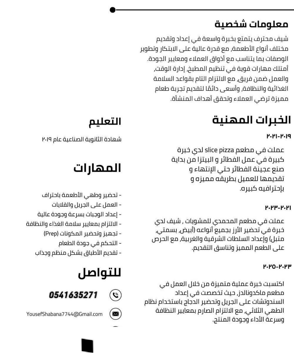 ابحث عن عمل في لدي خبرة مجال المطاعم مساعد شيف بيتزا ومساعد شيف سخن أرز