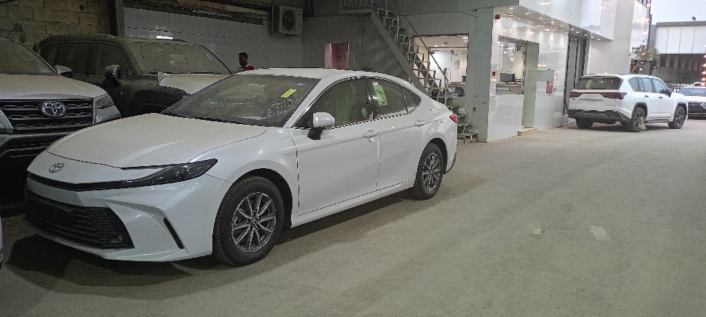 كامري 2026 المواصفات الأساسية (فئة E محرك 2.5 لتر، 4 سلندر، قوة 201 حصان، عزم 240 نيوتن.م. ناقل حركة أوتوماتيك 8 سرعات، دفع أمامي، استهلاك الوقود حوالي 17.2 كم/لتر. عبد اللطيف جميل تويوتا. المواصفات الخارجية: جنوط ألومينيوم مقاس 16 بوصة، أنوار أمامية LED، أنوار نهارية (DRL)، كشافات ضباب LED، مرايات كهربائية قابلة للطي مع إشارات. المواصفات الداخلية والراحة: مقاعد قماش، كرسي السائق كهربائي، شاشة معلومات 7 بوصة، مكيف أوتوماتيك.