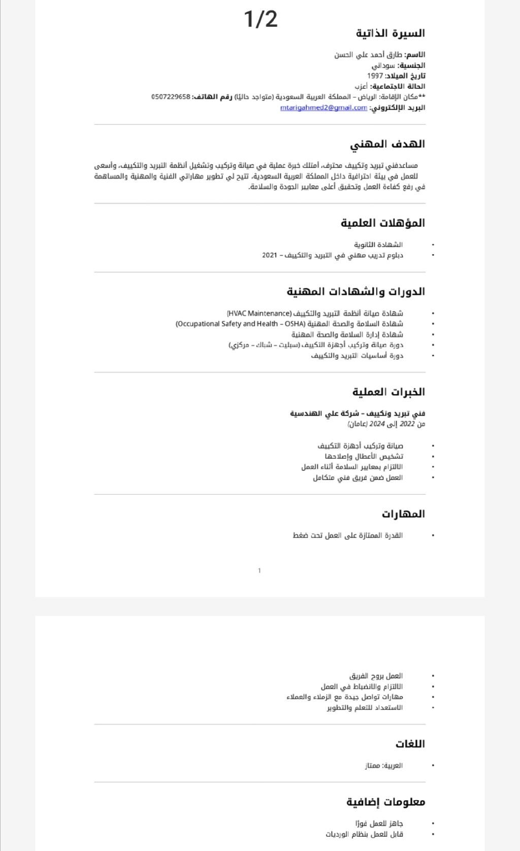مساعد فني تبريد وتكييف ابحث عن فرصة عمل داخل المملكة متواجد في الرياض