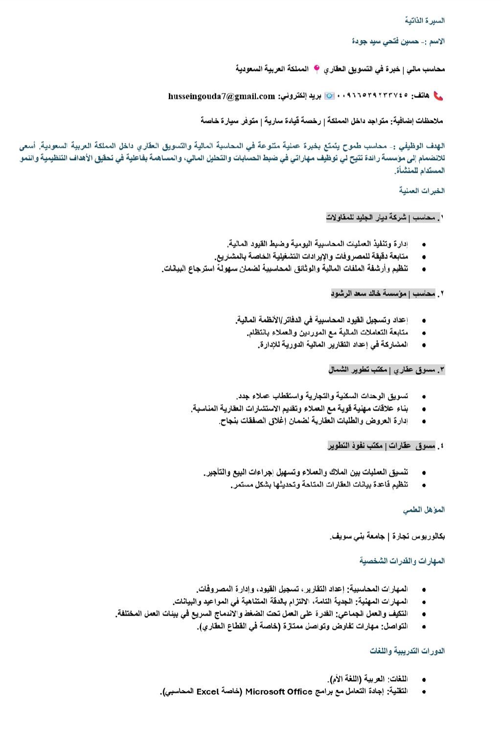 حسين فتحي سيد جودة محاسب لدي شركة عقاريه وخبرة في التسويق العقاري وكنت اعمل محاسب في شركة ديار الجليد كنت اعمل على برنامج قيود دفتره ملاحظات اضافية متواجد داخل المملكة رخصة قيادة سارية متوفر سيارة خاصة
