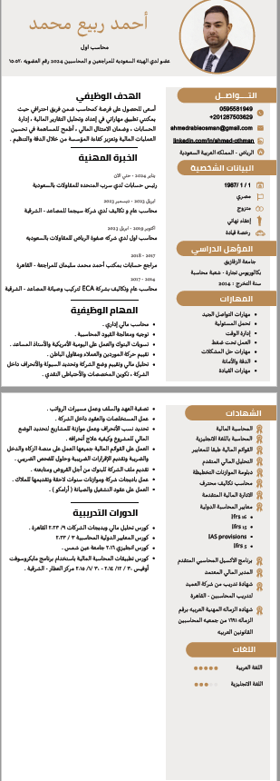 محاسب أول مصري باحث عن عمل متاح لنقل كفالة في مجالات الحسابات متعددة مقاولات - تطوير عقاري حسابات عامة المهنة محاسب تكاليف محاسب مالي اداري مصري خبرة 9 سنوات في المحاسبه الماليه. توجيه ومعالجة القيود المحاسبية. تسويات البنوك والعمل على اليومية الأمريكية والأستاذ المساعد. تقييم حركة الموردين والعملاء ومقاولي الباطن. تحليل مالي وتقييم وضع الشركة وتحديد نسبة السيولة والانحراف داخل الشركة، تكوين المخصصات