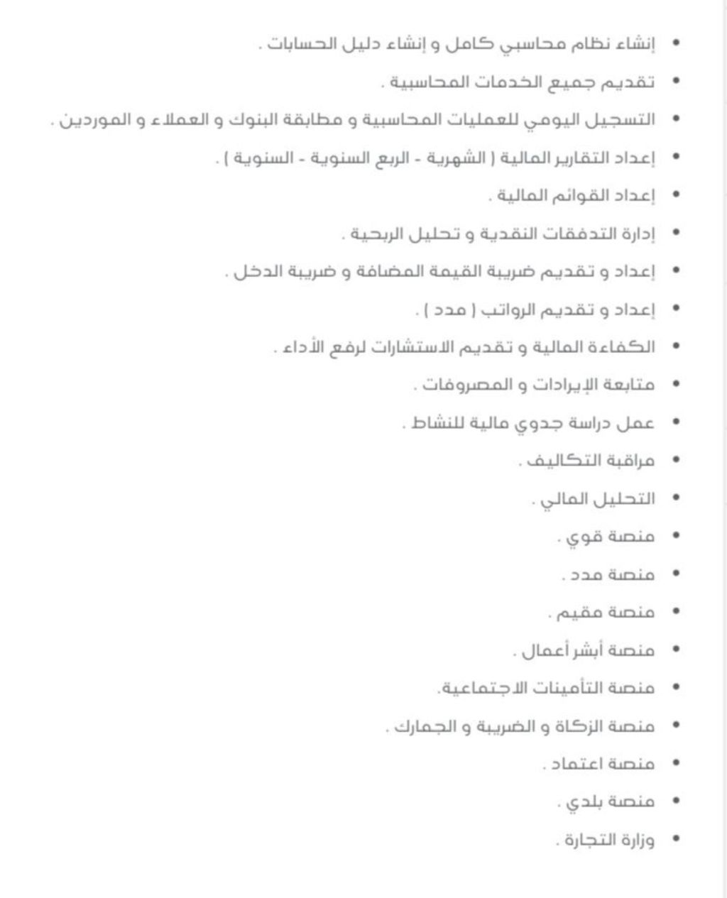 مدير حسابات خبرة 13 عام. خدمات محاسبية ومنصات حكومية - انشاء نظام محاسبي - التسجيل اليومي للحسابات - مطابقة البنوك والعملاء والموردين - اعداد التقارير المالية الشهرية والربع السنوية والسنوية - اعداد القوائم المالية - اعداد وتقديم الضريبة والزكاة والدخل - اعداد الرواتب وتقديمها مدد - جميع المعاملات الحكومية (قوي - مقيم - مدد - الزكاة والدخل - التأمينات الاجتماعية - وزارة التجارة) العمل عن بعد وبزيارات