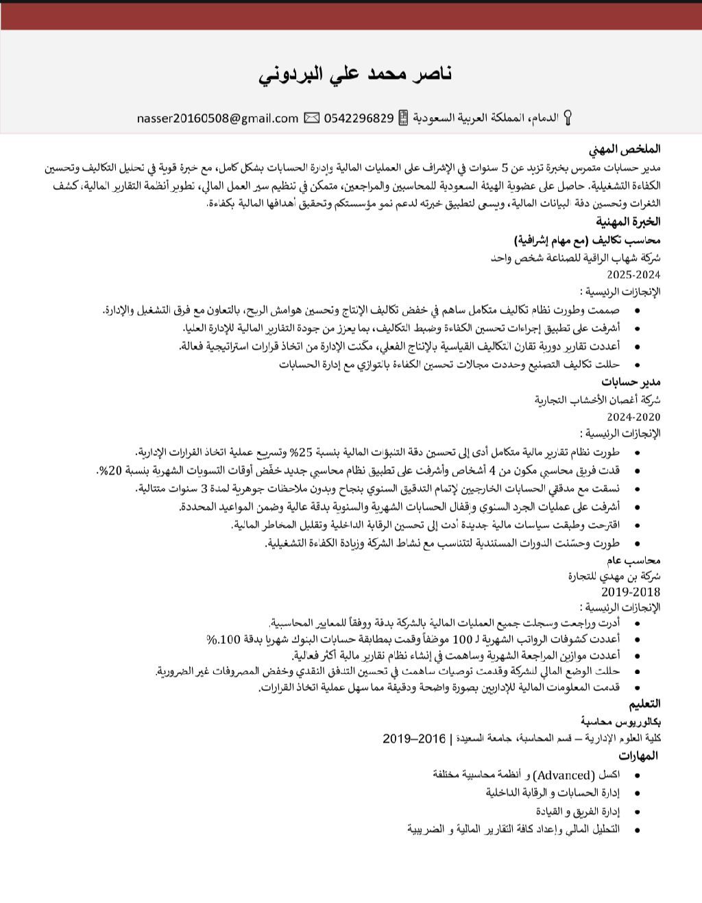 مدير حسابات محاسب تكاليف محاسب عام خبرة أكثر من 7 سنوات في إدارة الحسابات والاشراف المالي الأقفال الشهري والسنوي محاسبة التكاليف، اعداد الميزانيات والقوائم المالية ضريبة القيمة المضافة واقراراتها الدورية والتعامل مع مكاتب المحاسبين القانونيين الخارجيين والمراجعين. متواجد في الدمام، جاهز للانضمام فورا، يمني الجنسية