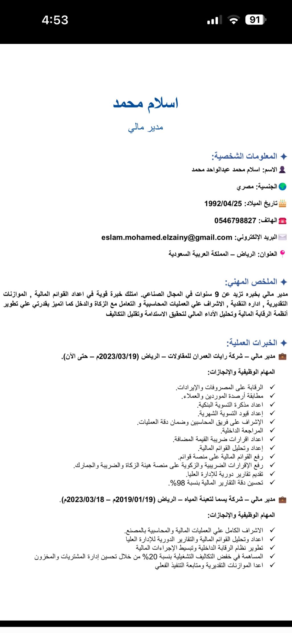 ابحث عن عمل مدير مالي بخبرة تزيد عن 9 سنوات في المجال الصناعي، التجارة والمقولات. امتلك خبرة قوية في اعداد القوائم المالية، الموازنات التقديرية، إدارة النقدية، والاشراف على العمليات المحاسبية ورفع اقرارات القيمة المضافة والتعامل مع الزكاة والدخل. كما أتميز بقدرتي على تطوير أنظمة الرقابة المالية وتحليل الأداء المالي لتحقيق الاستدامة وتقليل التكاليف