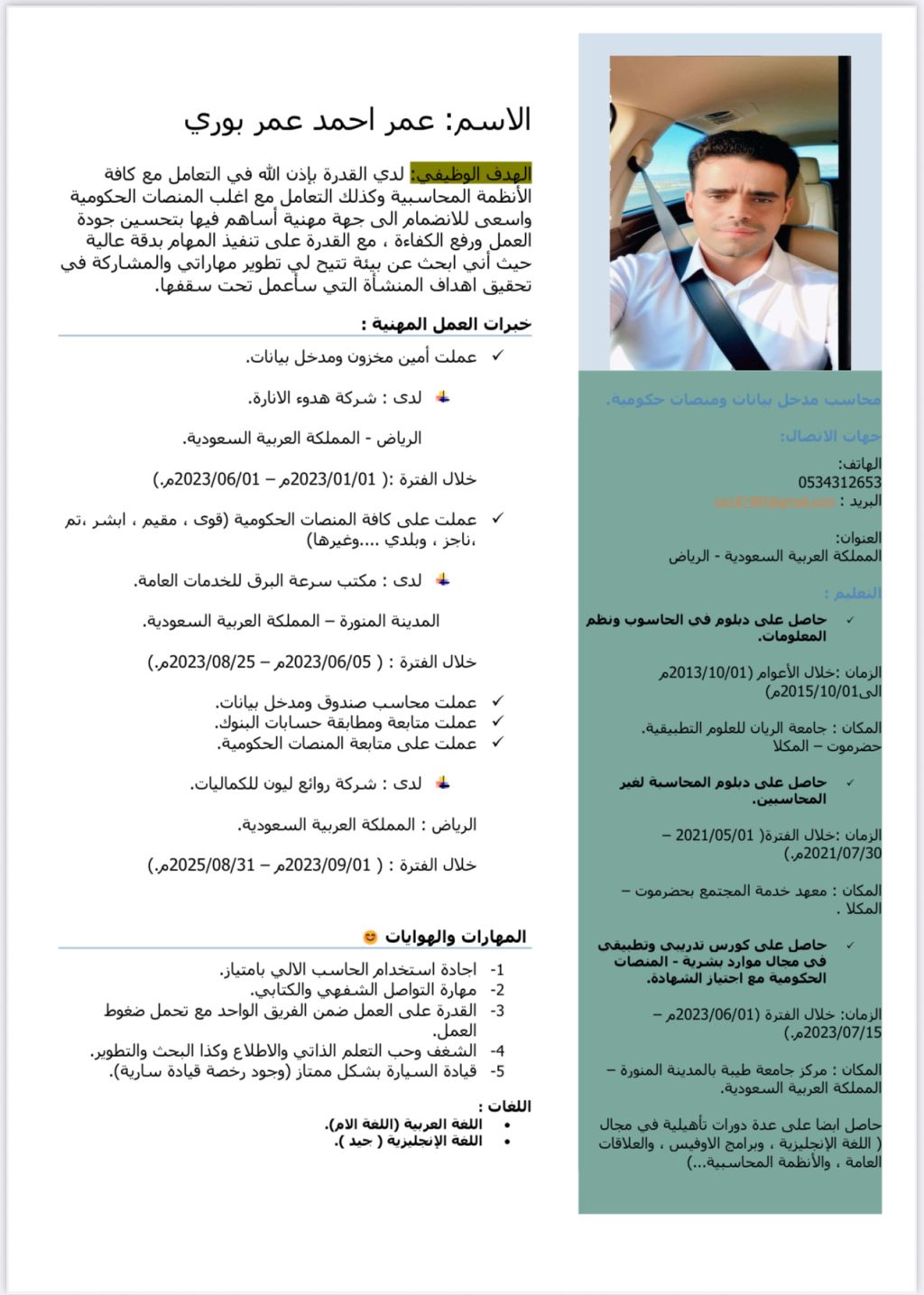 محاسب عام ومدخل بيانات ومتابعة منصات حكومية ورفع الاقرار الضريبي شهادة خبرة أكثر من 3 سنوات متاح بارت تايم أو عن بعد العنوان الرياض العزيزية